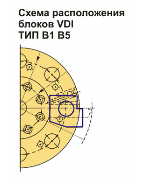 Инструментальный блок VDI30 типа B1 предназначен для резцов с прямоугольным сечением. Это изделие используется для наружной продольной обработки и торцевого точения. Резец устанавливается с пластиной вверх, а опорная поверхность располагается ниже оси центров.