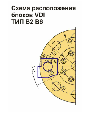 Резцедержатель VDI30 тип B2, левосторонний и радиальный, принадлежит к укороченной серии. Его базовая опорная поверхность расположена ниже оси центров (оси вращения шпинделя) и предназначен для как радиального, так и продольного наружного точения. Высота h1 составляет 20/16 мм (с проставкой 16 мм — без проставки 20 мм).