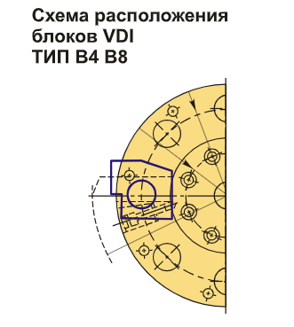 Инструментальный блок VDI60 типа B4 предназначен для резцов с прямоугольным сечением. Данная модель оправок VDI используется для наружной продольной обработки и торцевого точения. Резец устанавливается с пластиной вниз, при этом опорная поверхность выше оси центров.