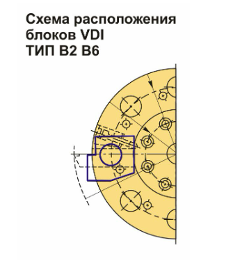 Инструментальный блок VDI60 типа B6 предназначен для резцов с прямоугольным сечением. Данный тип оправок VDI подходит для наружной продольной обработки и торцевого точения. Резец устанавливается с пластиной вверх, при этом опорная поверхность находится ниже оси центров.