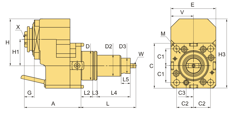 Приводной фрезерный блок (осевая головка) с осевым смещением BMT подходит для использования с цангами при наружной токарной обработке.