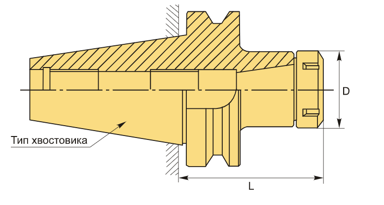 Цанговый патрон типа BT-ER обеспечивает надежное центрирование и фиксирование режущего инструмента.