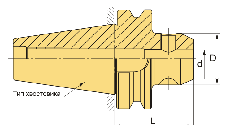 Конус по стандарту MAS403 BT30. Внутреннее отверстие диаметром 12 мм предназначено для установки инструмента с цилиндрическим хвостовиком, оснащённым продольной лыской (шпоночной канавкой), в соответствии со стандартами DIN 1835-B и DIN 6535-HB. Фиксация осуществляется одним винтом с шестигранным ключом, который входит в лыску хвостовика и обеспечивает надёжную передачу крутящего момента.