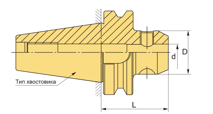 Вылет инструмента (расстояние от базовой поверхности конуса до торца патрона) составляет 50 мм. Радиальное биение не превышает 0,005 мм, что гарантирует высокую точность обработки.