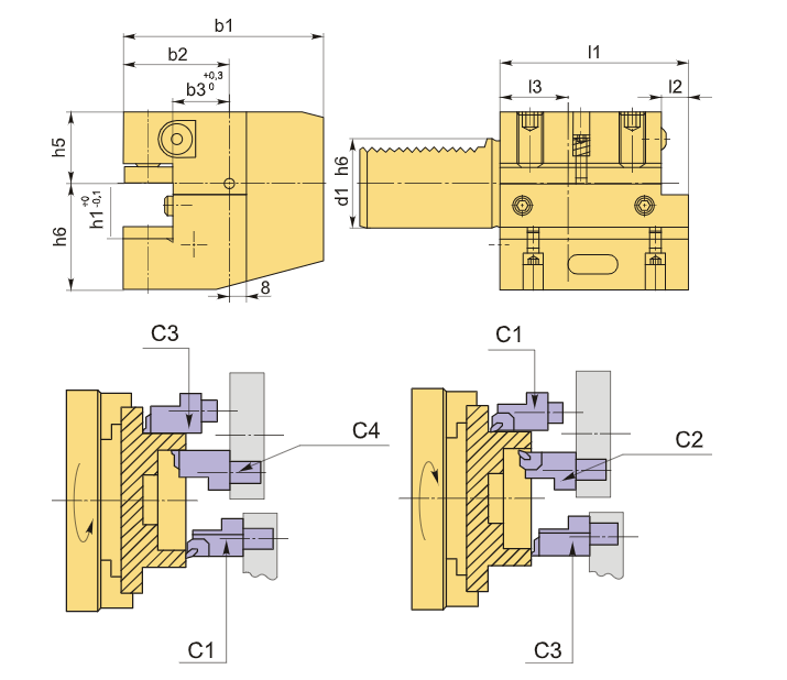 Резцедержатель комплектуется хвостовиком стандарта DIN 69880 (ГОСТ 24900) с зубьями, который устанавливается в специальное отверстие револьверной головки станка.