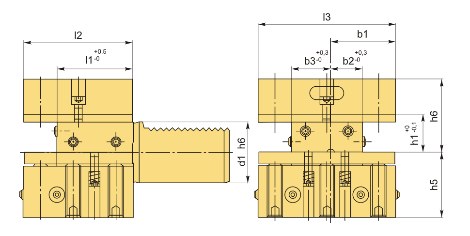 Резцедержатель VDI50 типа D2, многофункциональный, квадратной формы, предназначенный для работы слева, с обратным расположением. Это аксиально-радиальный держатель со штоком VDI. По своему назначению данный тип D2 аналогичен держателям коротких серий C3, C4 и B4. Его базовая опорная поверхность находится выше оси центров (оси вращения шпинделя), что делает его идеальным для наружной токарной обработки и торцевого точения. Высота держателя h1 составляет 32/25 мм (без проставки 32 мм, с проставкой 25 мм).