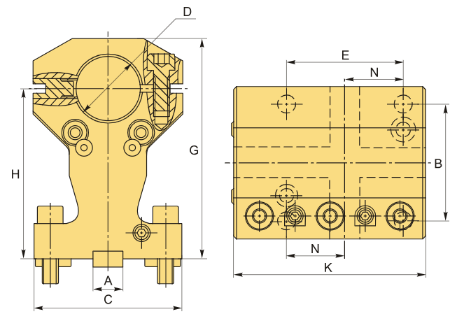 Уровень прижима инструмента в этом блоке значительно выше, чем в стандартных моделях, благодаря равномерному зажиму болтами по всей поверхности хвостовика, осуществляемому через щелевидную конструкцию. Это способствует уменьшению вибраций при работе и повышает точность и качество обработки.