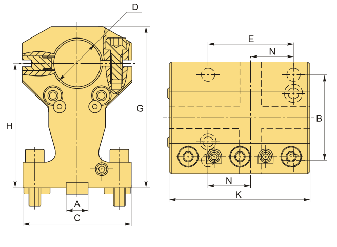 Прижим инструмента в этом блоке более жесткий по сравнению с обычными аналогами, так как зажатыми болтами охватывается вся поверхность хвостовика благодаря специальной щелевидной конструкции. Это позволяет существенно снизить вибрацию инструмента и улучшить точность и качество обработки.