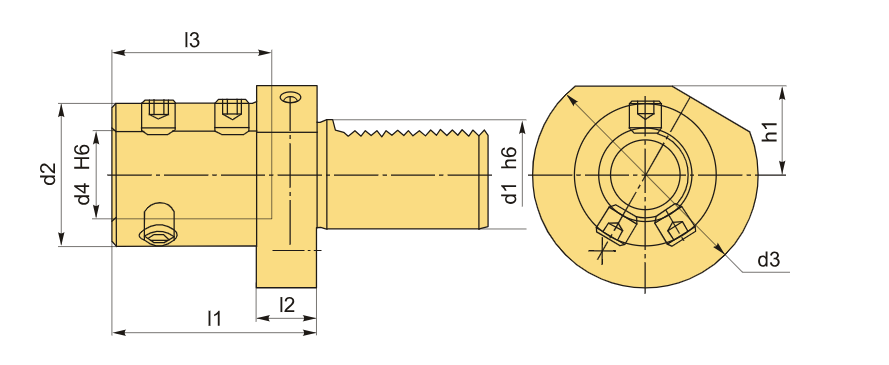 Держатель VDI типа E1 предназначен для крепления инструментов с цилиндрическим хвостовиком диаметром 20 мм. Хвостовик оправки соответствует стандарту VDI30. Этот блок VDI обычно используется для фиксации корпусных сверл с U-образными сменными пластинами, но также может применяться для крепления другого осевого инструмента с хвостовиками, соответствующими стандарту DIN 6595, которым требуется подача охлаждающей жидкости через внутренние каналы и наличие шлица.