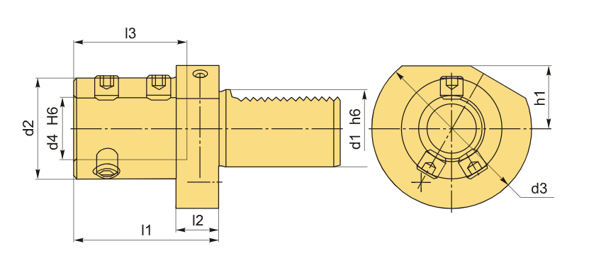 Держатель VDI типа E1 предназначен для надежного крепления инструментов с цилиндрическим хвостовиком диаметром 25 мм, в этом случае используется хвостовик VDI30. Основное применение блока VDI заключается в фиксации корпусных сверл с U-образными сменными пластинами, но он также подходит для удержания другого осевого инструмента с хвостовиком по стандарту DIN 6595, где предусмотрена внутренняя подача охлаждающей жидкости, а также для инструментов с вырезом на хвостовике.