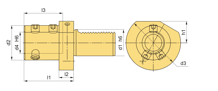 Держатель VDI типа E1 предназначен для крепления инструментов с цилиндрическим хвостовиком диаметром 20 мм и хвостовиком под стандарт VDI50. Он в основном используется для фиксации корпусных сверл с U-образными сменными пластинами, но также подходит и для другого осевого инструмента с хвостовиком по стандарту DIN 6595, когда необходимо внутреннее подведение охладителя и использование инструмента с шлицами.