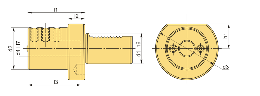 Держатель E2 VDI надежно фиксирует державку и осевой инструмент с помощью винтов, обеспечивая внешнее охлаждение.