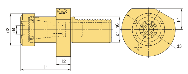 Цанговый патрон VDI типа E4 предназначен для надежного закрепления цанг ER40 в соответствии со стандартом DIN 6499. Он обеспечивает диапазон зажима от 3 до 30 мм и имеет хвостовик размера VDI40. Система охлаждающей жидкости подводится внутрь через цангу.