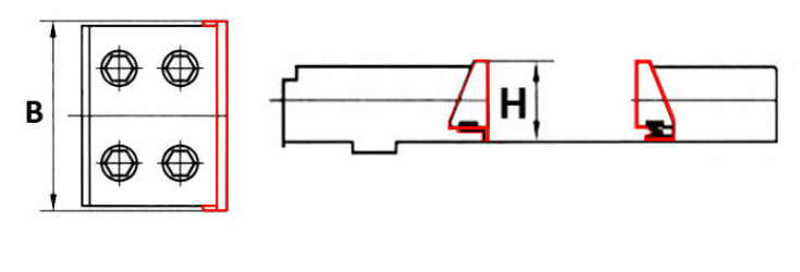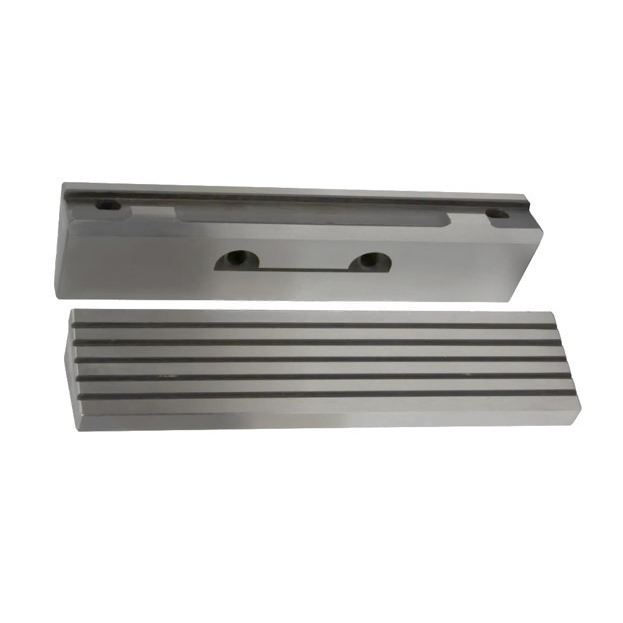 Комплект сменных губок с выступом и продольным рифлением для прецизионных станочных тисков GT150. В набор входят две губки.