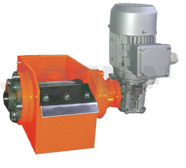 Магнитный сепаратор представляет собой корпус со скребком для снятия собранных включений и вращающимся барабаном с магнитной системой, выполненной из мощных магнитов на основе ферритов или редкоземельного сплава.