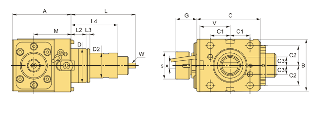 Инструмент с углом привода 90°, оснащённый одним цанговым патроном, обеспечивает внутреннюю и внешнюю подачу охлаждающей жидкости, совместим с цангами DIN 6499. Максимальная скорость вращения составляет 5500 об/мин (RPM), а передаточное отношение равно 1:1. Высокое качество приводных блоков достигается благодаря использованию современных технологий и оборудования при их производстве.
