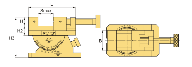 Конструкция тисков делится на два основных компонента: корпус и поворотное основание. Оно может вращаться на 360° в горизонтальной плоскости и наклоняться на 45° в вертикальной. Благодаря прецизионной делительной шкале и наклонной базе, возможна точная обработка как прямых, так и наклонных поверхностей на различных станках, включая фрезерные, сверлильные, заточные, расточные, электроэрозионные и шлифовальные.