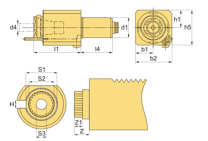 Приводные блоки VDI, включая угловой сверлильно-фрезерный модуль, разработаны для надежного крепления инструмента. Они устанавливаются в револьверные головки токарных станков с ЧПУ и обрабатывающих центров. Используется цанга ER25 DIN 6499, обеспечивающая захват инструментов диаметром от 2 до 16 мм.