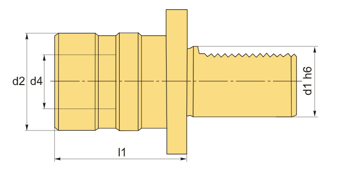 Держатель VDI типа VDI-TC предназначен для использования с машинными метчиками и оборудован резьбонарезным патроном, который позволяет закреплять метчики в быстросменных цангах. Хвостовик оправки имеет размер VDI40, а посадочный диаметр цанги составляет 19 мм. Этот инструмент предназначен для нарезки внутренней резьбы с использованием машинных метчиков.